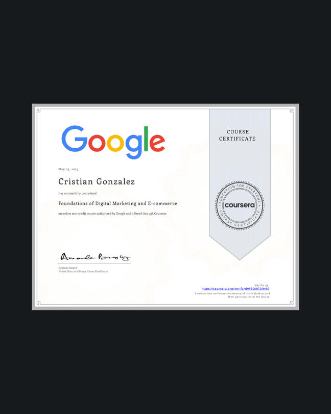 Google certified digital marketer with hands-on experience running real paid ad campaigns. Not just theory. I've managed campaigns with my own money on the line.